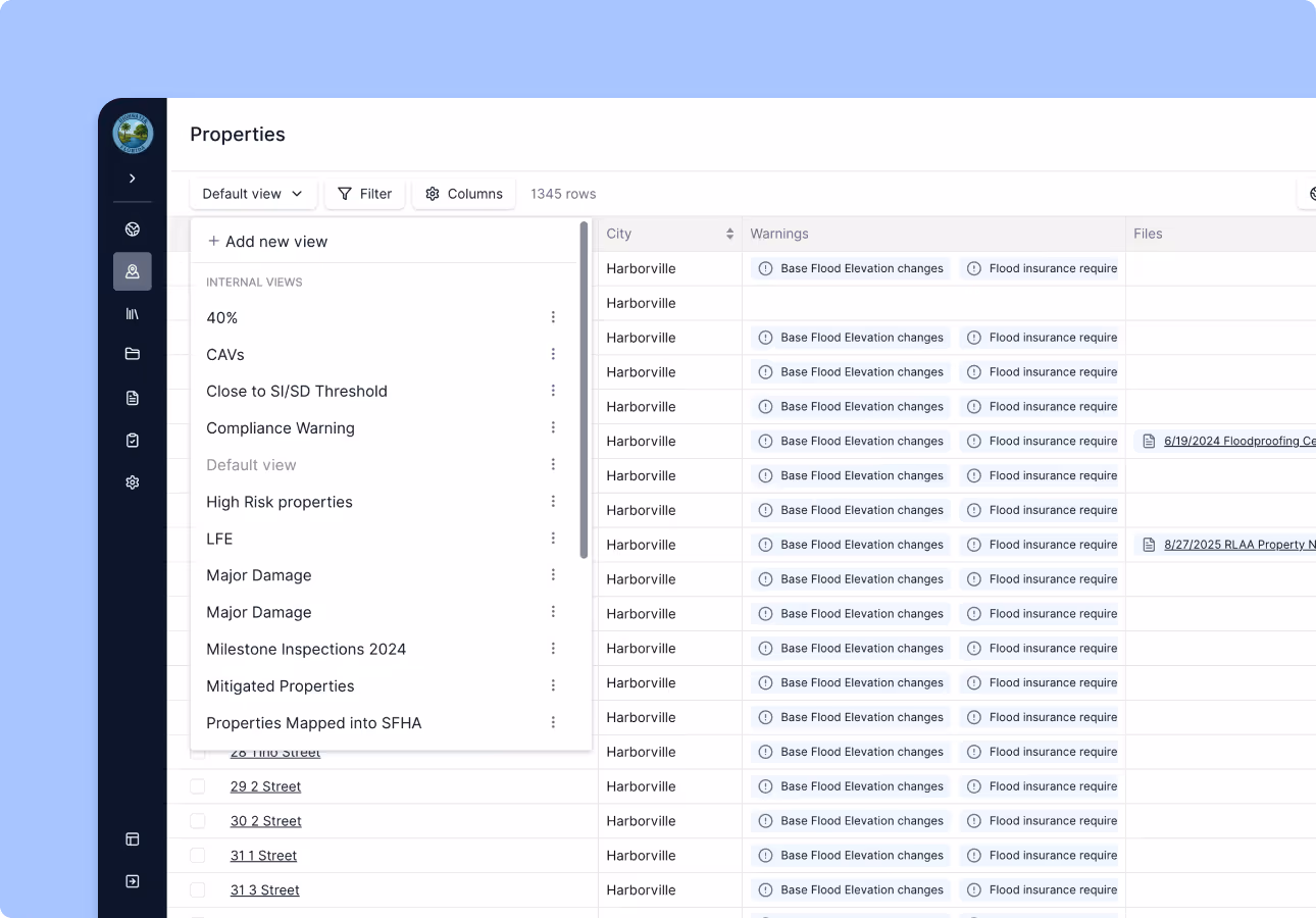 Build tailored views using the data fields that matter — including tags, status, geography, or program.