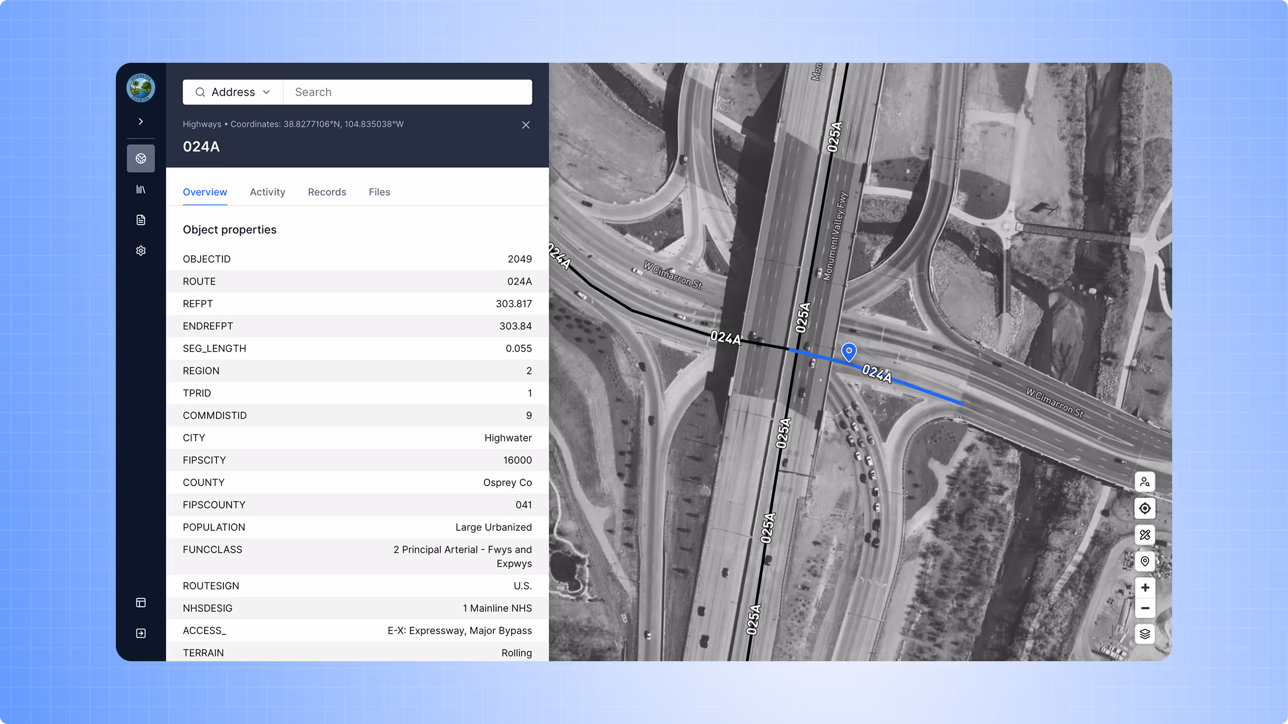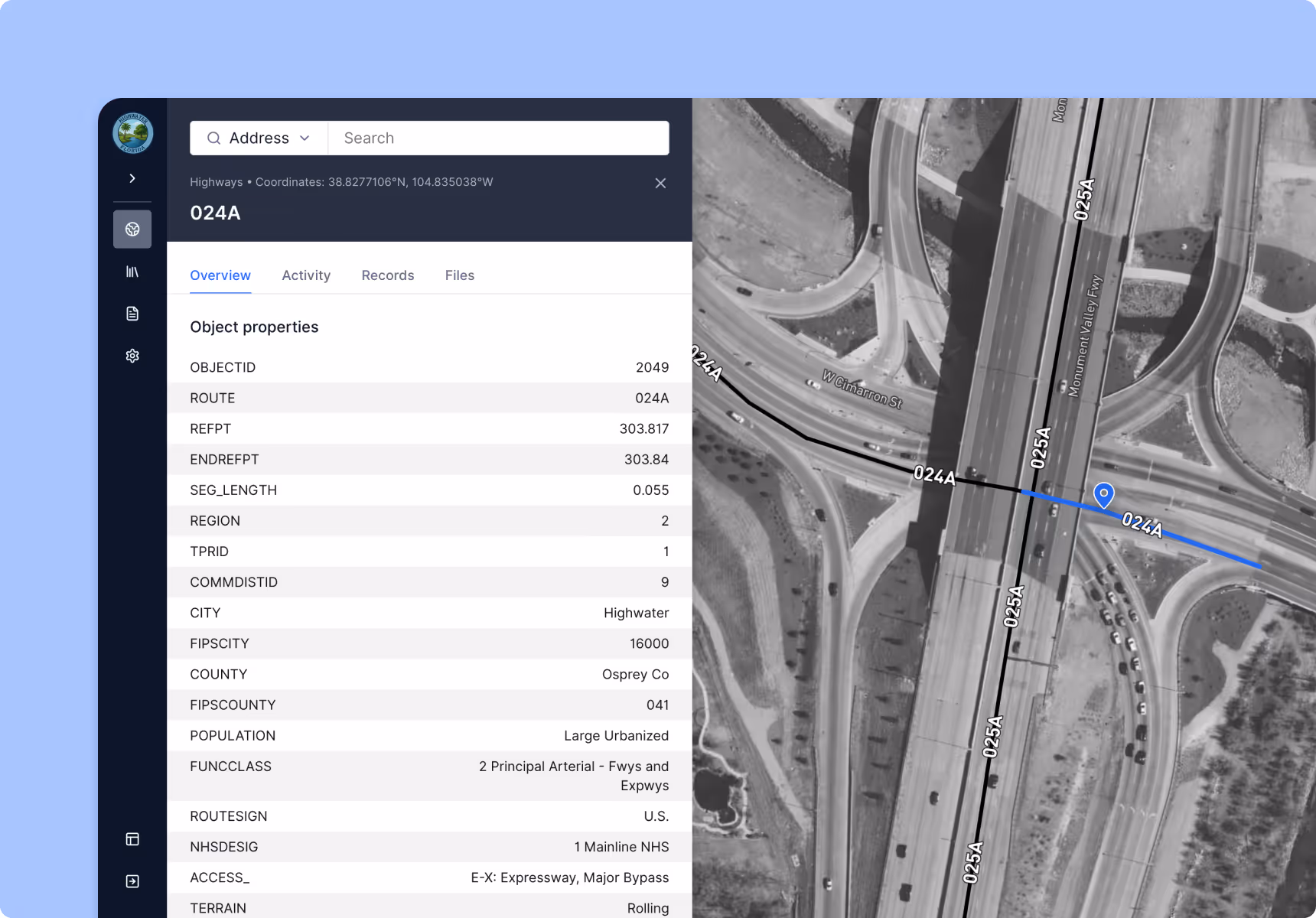 Plot every road, bridge, dam, culvert, sign, and facility on a geospatial map. Quickly understand asset attributes, nearby hazards, and relationships between infrastructure systems.
